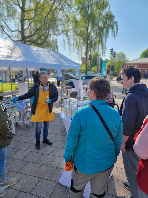 Die Arbeitsgruppe Küstenschlemmerei bot eine Verkostung der selbstgemachten Fruchtaufstriche an. Diese konnten auch käuflich erworben werden. An dem Infostand konnten sich die Besucher über das Thema Inklusion und Selbstständigkeit von Menschen mit Behinderungen informieren.