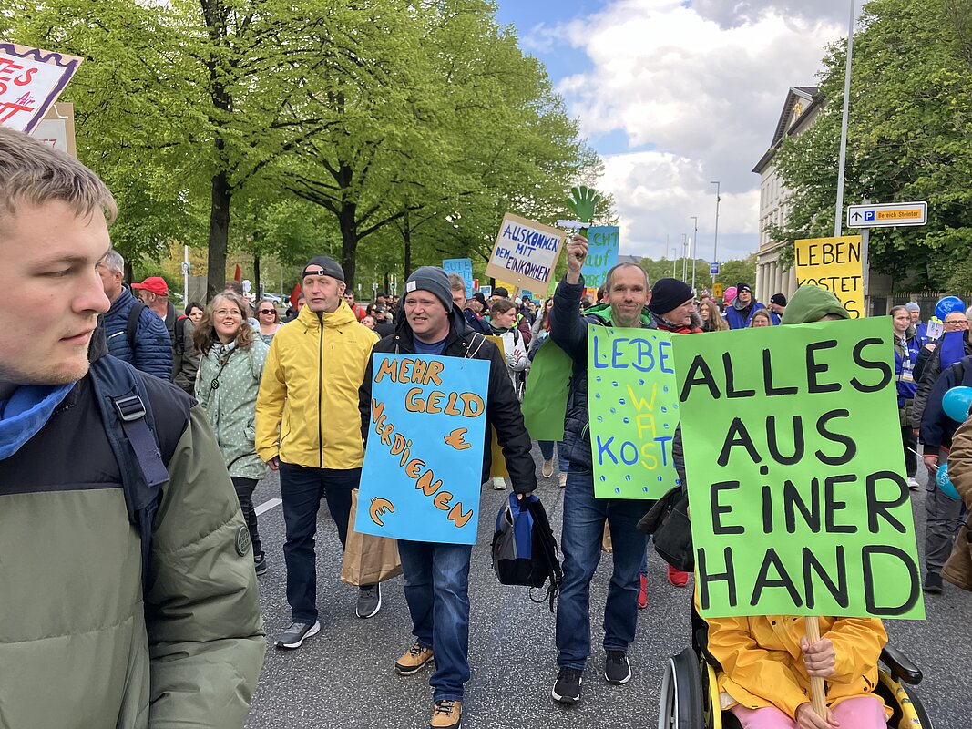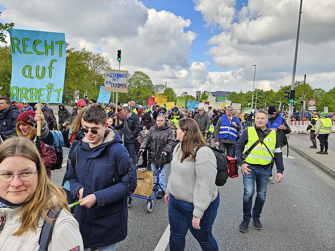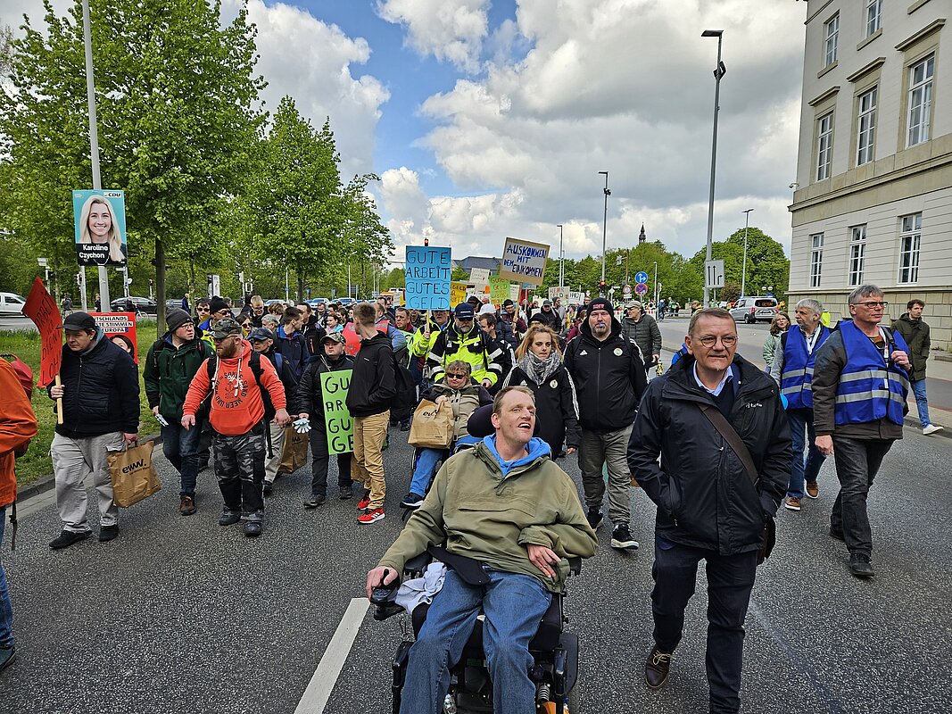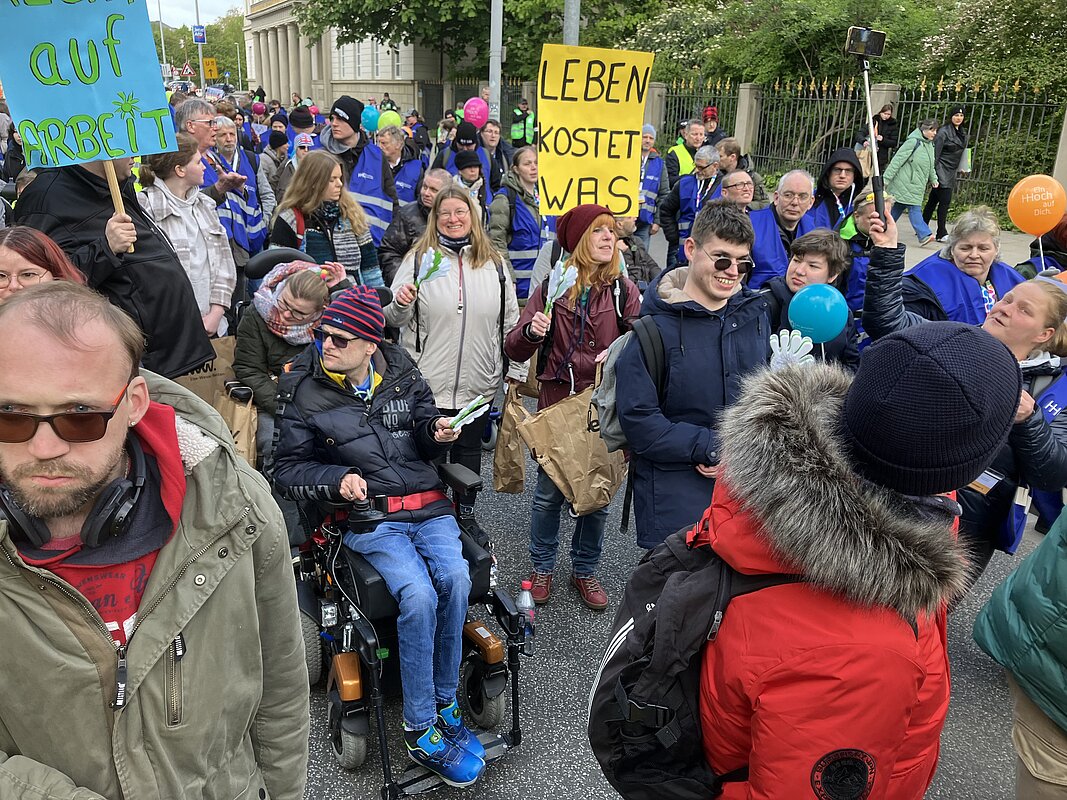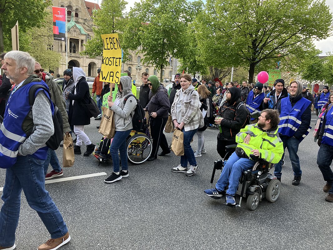 Am Dienstag, 23. April 2024 haben die Werkstatträte aus ganz Niedersachsen in Hannover für die Rechte der Werkstatt-Beschäftigten demonstriert. Die Elbe-Weser Welten unterstützten diese wichtige Aktion und reisten mit ca. 135 Beschäftigten an. Die Veranstaltung stand unter dem Motto „Auskommen mit dem Einkommen“ und einer Werkstattreform im Sinne der Beschäftigten sowie der Forderung nach einem höheren Entgelt für Werkstatt-Beschäftigte.