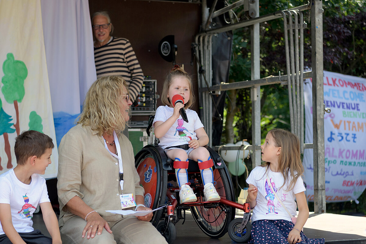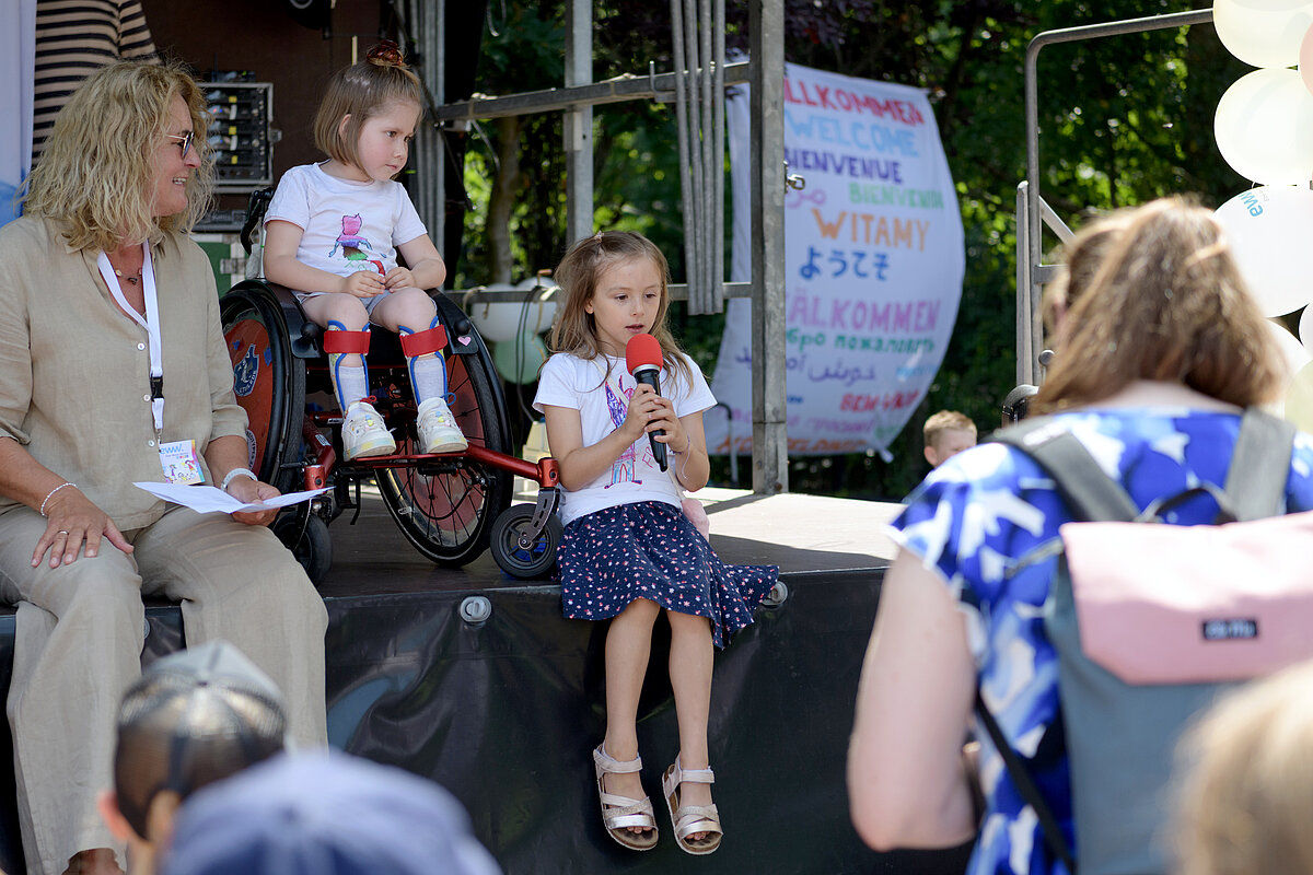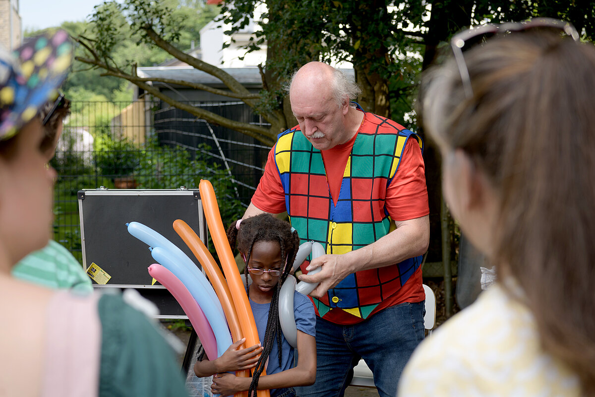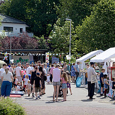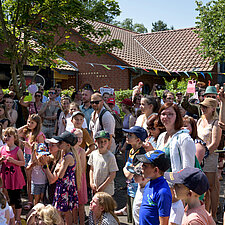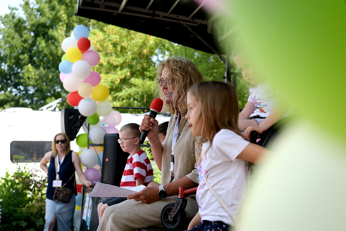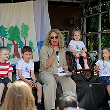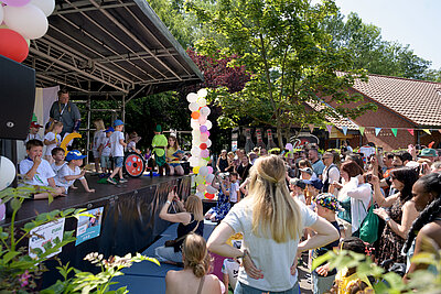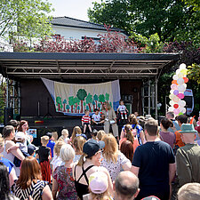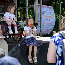 Um 12:00 Uhr eröffnete Angelika Oest feierlich das Fest – gemeinsam mit einigen Kindern der Kita. In ihrer Begrüßung bedankte sie sich herzlich bei den Anwohner*innen des Weißdornwegs für die großartige Unterstützung und die Bereitschaft, die Straße für das Fest zu sperren. Die Straße war festlich geschmückt und wurde zur Bühne für gelebte Inklusion.