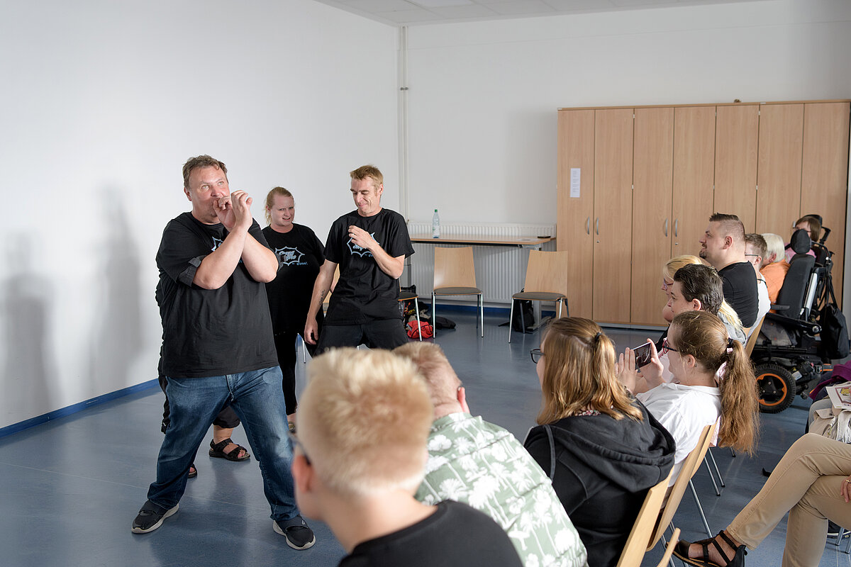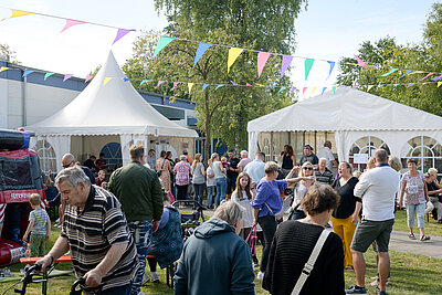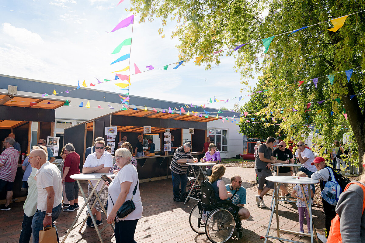 Im Verkaufszelt wurden eine Vielzahl an Produkten angeboten, die in den Elbe-Weser Welten hergestellt wurden. Diese handgefertigten Waren können weiterhin im Werksverkauf (Heinrich-Brauns-Str. 7, 27578 Bremerhaven) erworben werden. Ein weiteres Highlight des Tages waren die Auftritte der Theatergruppe „Crazy Impro“, die zahlreiche Besucher anlockten und für gute Stimmung sorgten. Auch die „Radiogang“ der Elbe Weser Welten trug mit verschiedenen Interviews und einem tollen Programm zur Unterhaltung bei. Für die weitere musikalische Untermalung sorgte DJ Kristian Klement, der auf der Bühne mit seiner Musik für eine ausgelassene Atmosphäre sorgte.