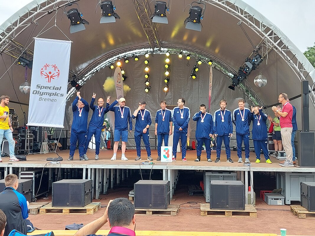 In der Endrunde erreichten die Fußballer der Elbe Weser Welten in der Leistungsgruppe 1 einen hervorragenden 3. Platz. Durch ihre Teilnahme haben sie sich zudem für die Special Olympics 2026 im Saarland qualifiziert.