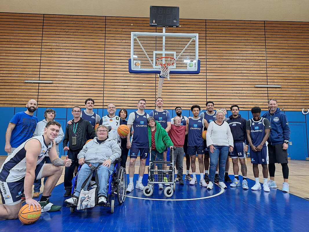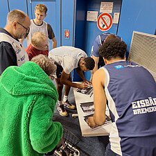 Knapp eine Woche vor dem mit Spannung erwarteten Inklusionsspieltag haben die Eisbären Bremerhaven am Donnerstag, den 5. Dezember 2024, zu einem besonderen Training eingeladen. Sieben Beschäftigte von Elbe-Weser Welten hatten die Gelegenheit, gemeinsam mit den Profis Körbe zu werfen und in die Atmosphäre eines echten Basketballtrainings einzutauchen. Während des offiziellen Trainings nahmen sie am Spielfeldrand Platz und feuerten begeistert jeden gelungenen Wurf an. Im Anschluss fand eine Autogrammstunde statt, bei der Erinnerungen festgehalten und Hände geschüttelt wurden.